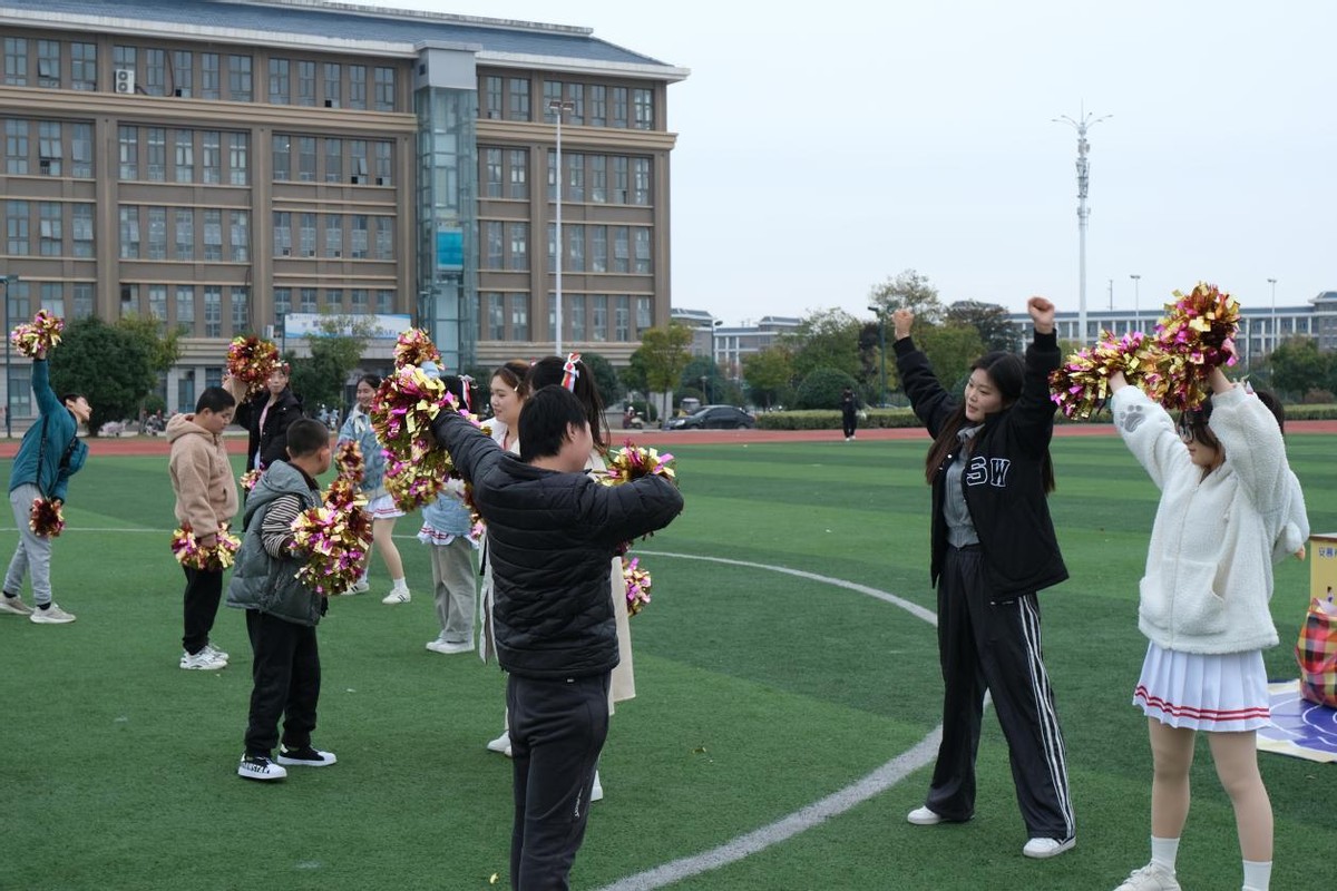 研学第三站,前往操场开展啦啦操学习活动,我校体育教学部老师为特教班学生精心编排了一套简单易学又充满活力的啦啦操《HELLO》。伴随着欢快的音乐节奏,大学生为特教班学生表演结束后,特教班学生跟着大学生的示范,认真地舞动着身体,脸上洋溢着灿烂的笑容。尽管动作可能不太标准,但他们的热情和专注感染了在场的每一个人。