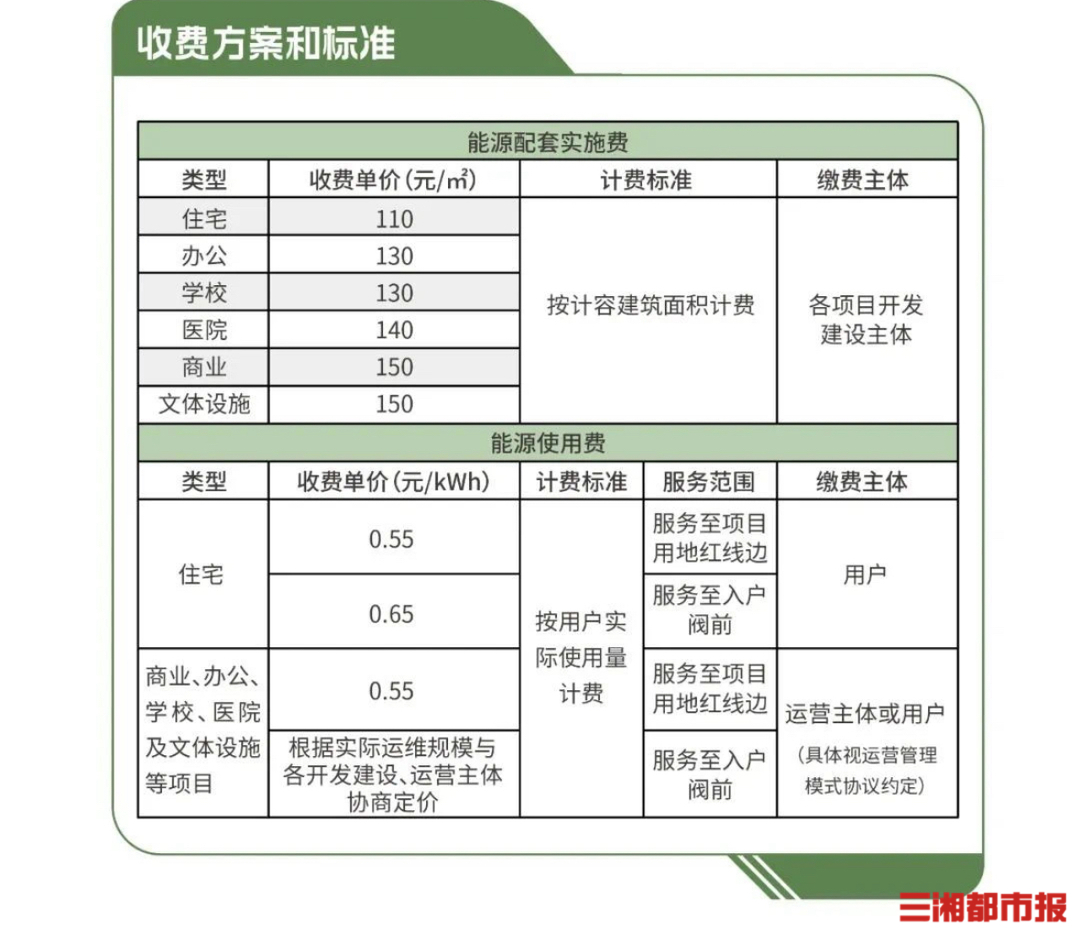 为了推动绿色能源产业蓬勃发展,让浅层地热能覆盖范围更广,望城区城发集团专门成立下属能源公司长沙市滨水生态智慧能源发展有限公司,主要负责地热能源开发利用和区域供能运营管理等。该公司相关负责人表示,通过市场调查和统计,大泽湖片区的浅层地热能集中供能的收费方案和标准以及供能温度时间等基本信息已经确定,主要分为能源配套实施费和能源使用费来收取。