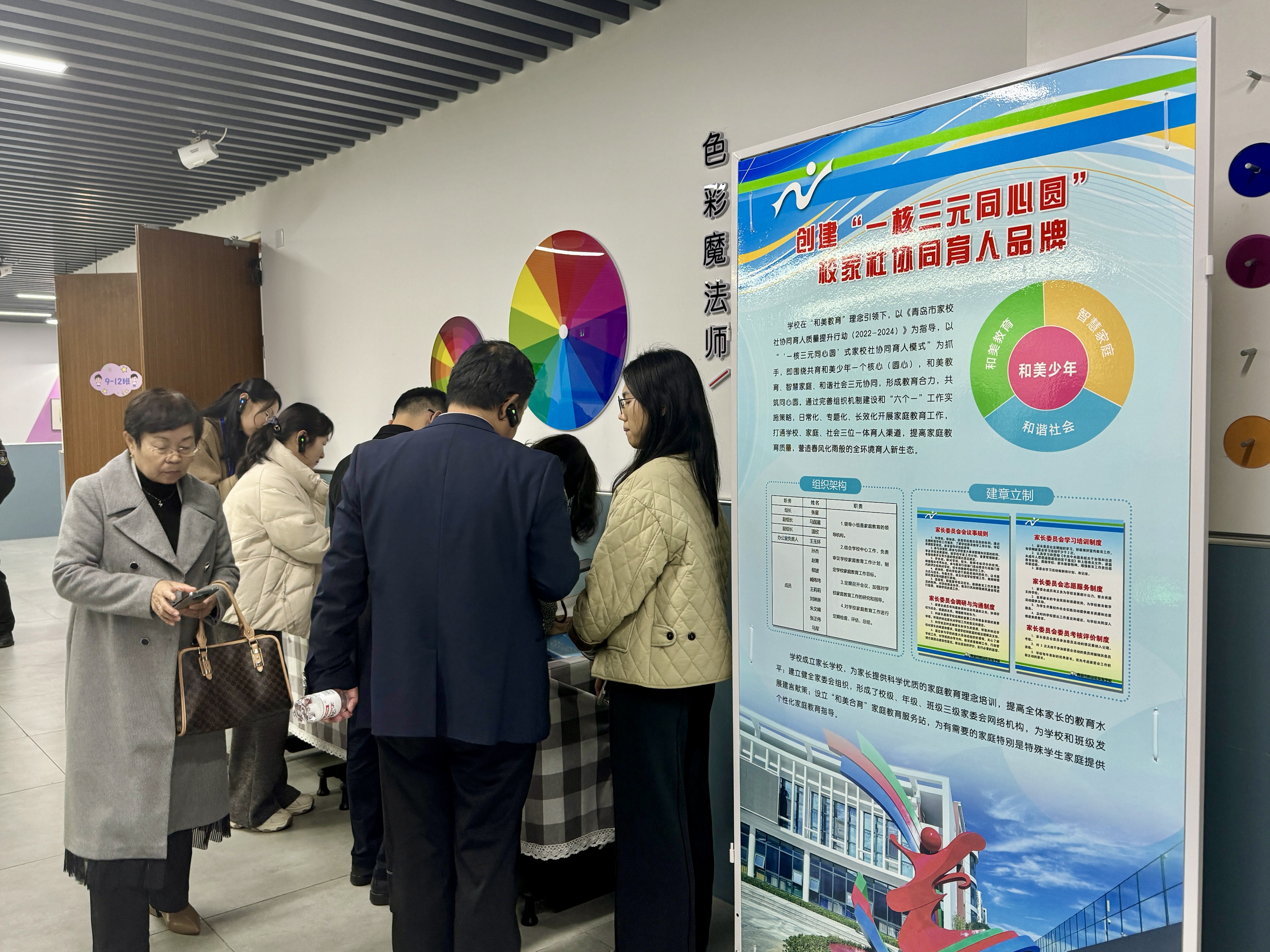 在青岛市崂山区实验学校,参观人员了解到了该学校以“和美教育”理念为指导,构建了“学校、家庭、社会”为一体的“一核三元同心圆”育人体系,和美教育、智慧家庭、和谐社会三元协同。学校加强机制建设,日常化、专题化、长效化开展家庭教育工作,融合教室小课堂、学校中课堂和社会大课堂的育人资源,开展校家社合育活动百余次,打造“一班一品”班级文化与“教子有方”智慧家庭。近年来,学校先后荣获全国首批科学教育实验校、山东省文明校园、山东省优秀家长学校、青岛市优秀家庭教育服务站等荣誉称号。