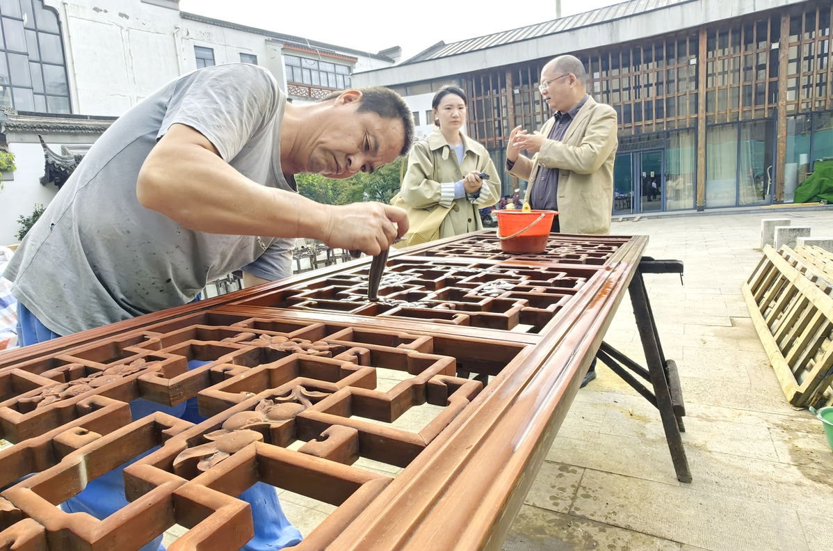“本次我们集结了二十多位新一批代表性传承人,对国家级非物质文化遗产项目‘香山帮传统建筑营造技艺’中的木作、泥水作、石作、漆作、彩花作、匾对作、砌街作、假山作等‘八大作’进行了集中展示。香山帮匠人们对于技艺的展示传承都十分重视,所以这次活动进行得比较顺利、圆满。”作为此次传承人的“领队”,吴中区代表性传承人朱留兴负责翻新工作的总统筹,他感到十分欣慰。