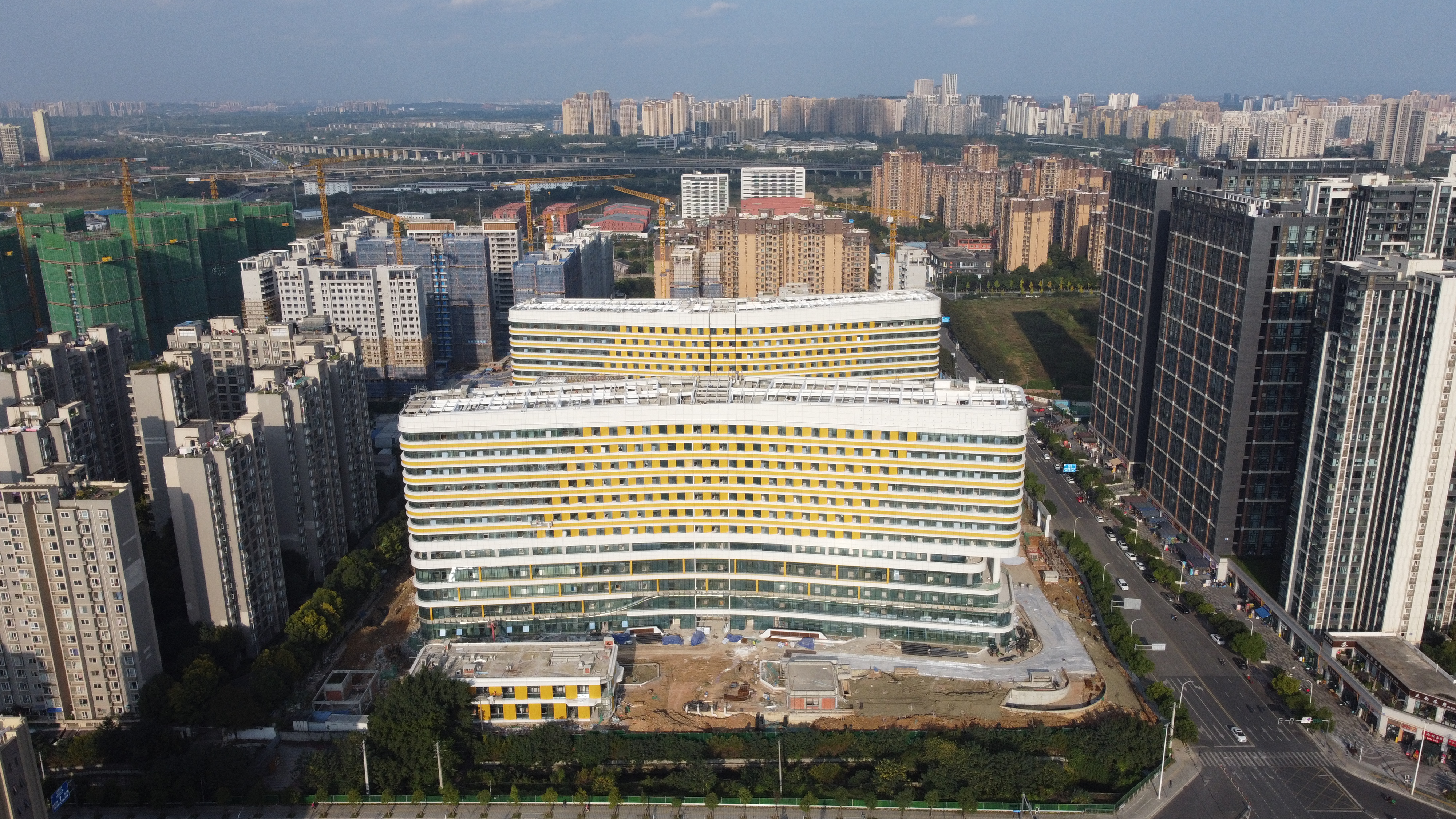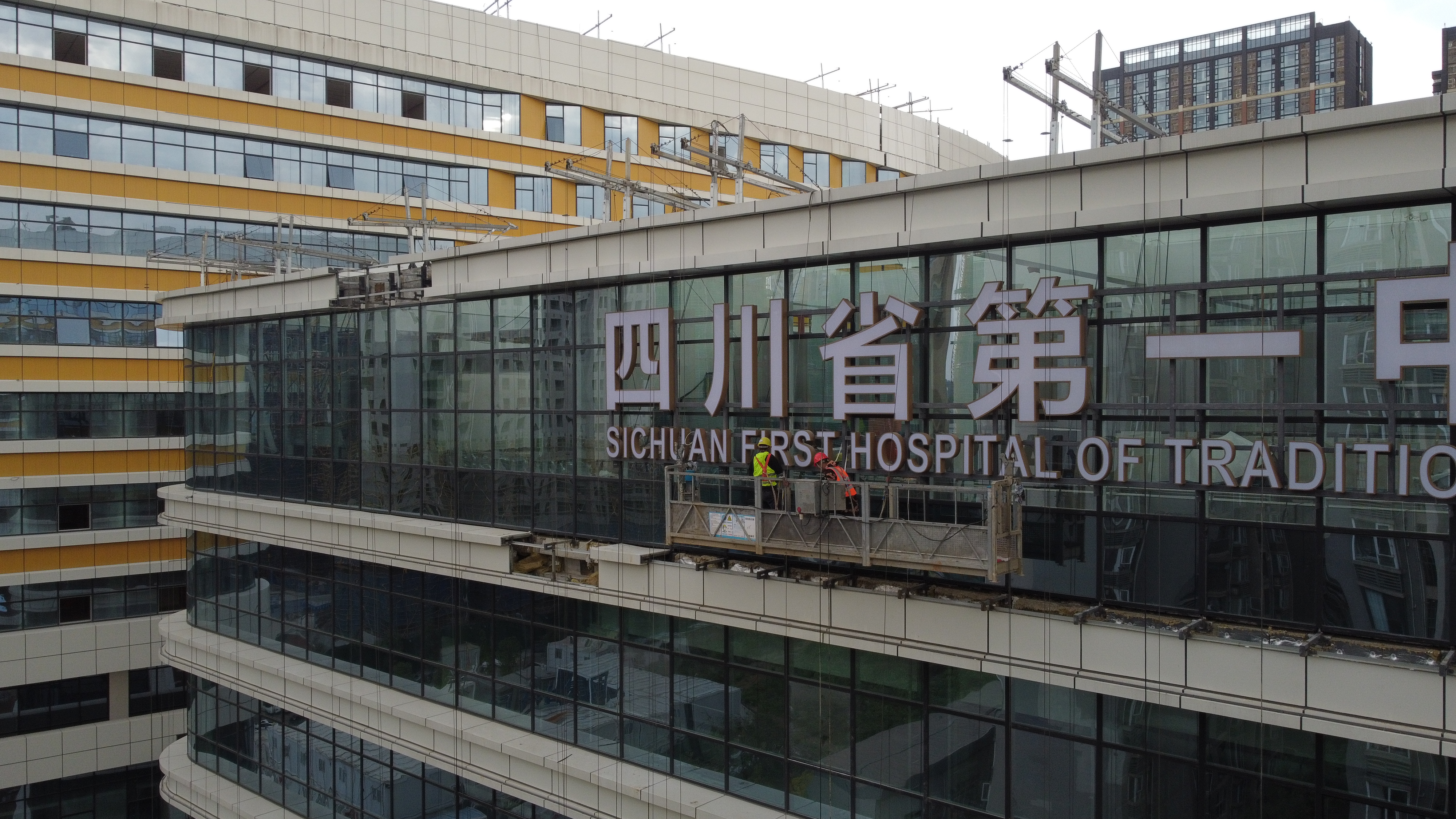 11月20日,红星新闻记者走进正在建设中的四川省第一中医医院,两名工人正站在登高车上为该医院“挂牌”。从项目外部看,整个项目已基本呈现。据中国五冶集团四川省第一中医医院项目相关负责人介绍,截至目前,该项目主体结构已经封顶,正进行末端设备调试、绿化、路基等施工,预计整个项目将于2025年3月建成。