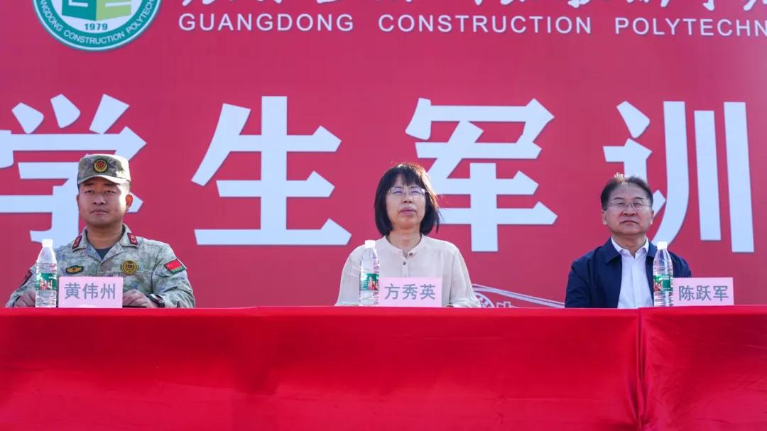 学校党委副书记方秀英、副校级干部陈跃军、广州市白云区均禾街武装部部长刘玉军、各二级学院党总支书记、学工办主任、承训单位全体教官、辅导员、2024级参训学生参加仪式。仪式由保卫部部长罗光华主持。