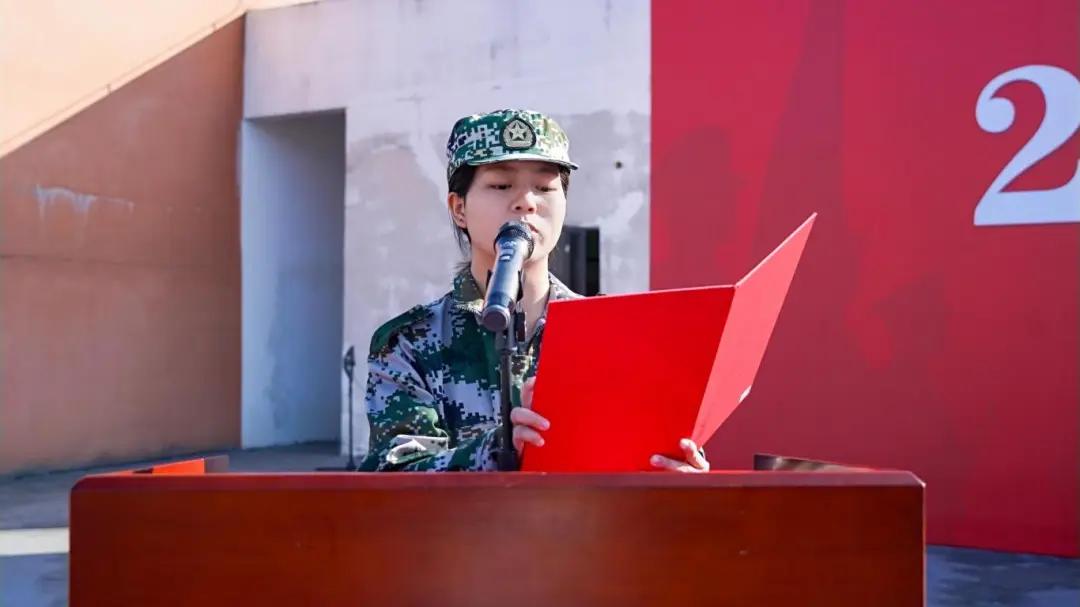 建筑信息学院陈关玲、经济管理学院罗钰媚代表全体参训学生承诺:将在军训实践中厚植爱国热情,增强国防观念,培养集体精神,以军人的标准严格要求自己,全面完成军训期间各项训练任务,努力提高自身综合素质。