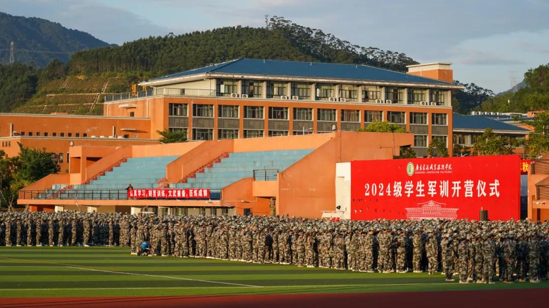 11月18日上午,广东建设职业技术学院清远校区和广州校区同时举行2024级学生军训开营仪式。7400多名学子开始为期两周的军训生活。