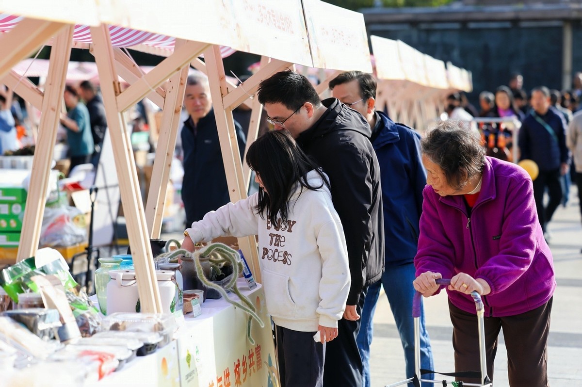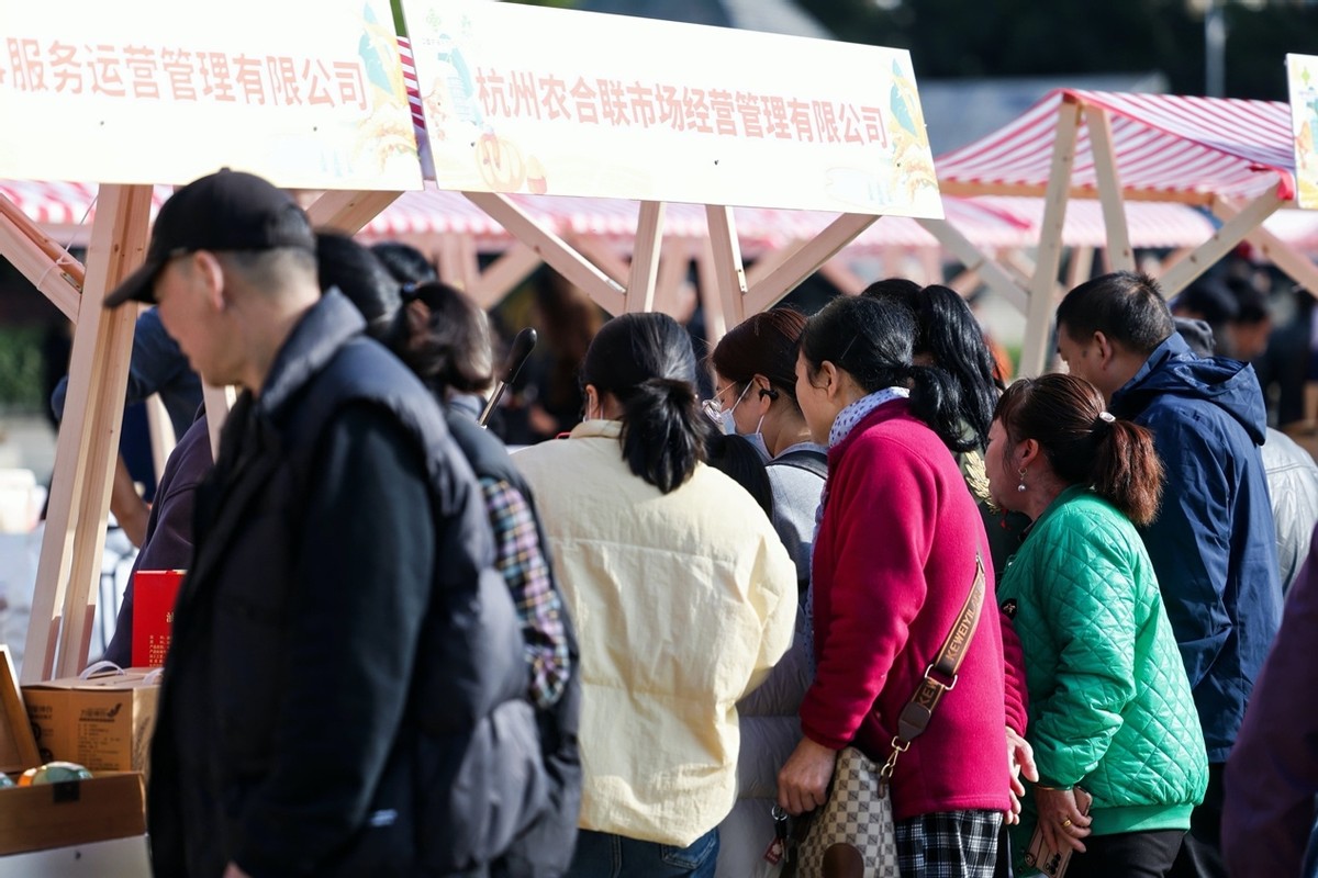 家住西城广场附近桂花城的刘小姐被市集吸引,打算来一场大采购分给亲朋好友。刘小姐说:“家门口的市集不仅让杭州市民能够享受到优质的农产品,还能通过消费帮扶,为农民朋友增收,是一举两得的好事。”