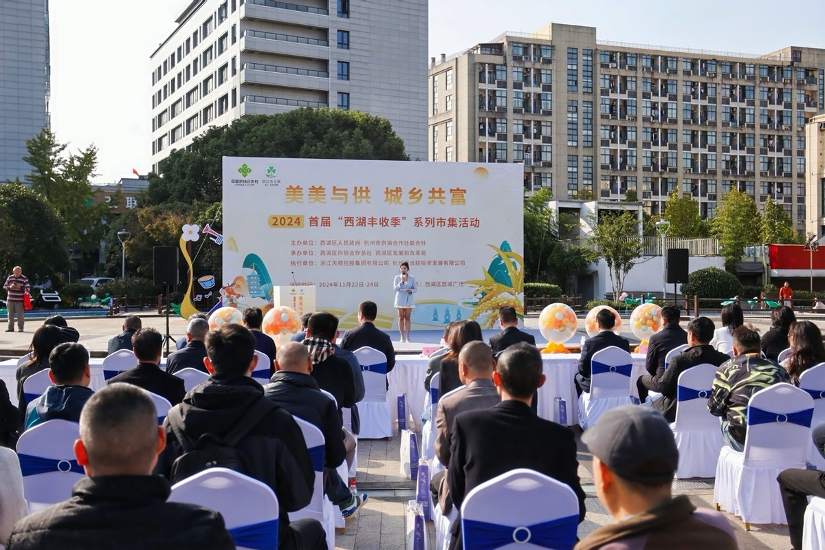 11月23日-24日,西湖区供销合作总社深化农企合作,探索深度融合农文旅新路径,在西城广场举办首届“西湖丰收季”供富市集。本次市集以“美美与供,城乡共富”为主题,紧紧围绕西湖区“两高两区”发展目标,旨在搭建起一座市民与农民之间沟通的桥梁,推动农产品销售,助力农民增收,促进城乡共富,为乡村振兴注入新的活力。