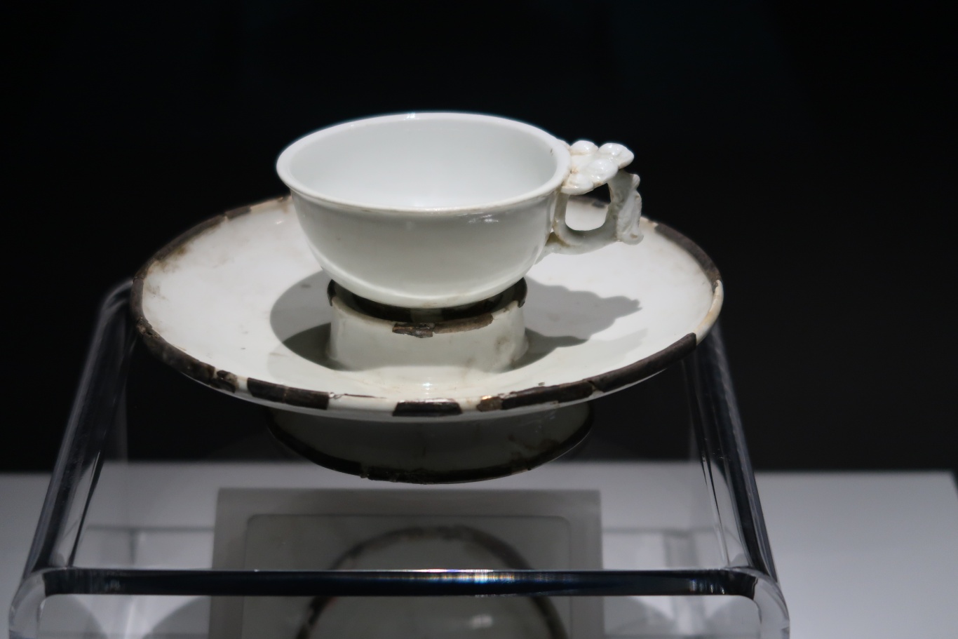 唐 水丘氏墓出土白瓷“新官”款银釦云龙纹把杯、白瓷“新官”款银釦盏托