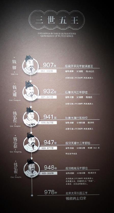 吴越国的历史以最后审时度势的“纳土归宋”告终。太平兴国三年(978年)五月,吴越国最后一位王者钱俶进入北宋京城开封,将其两浙十三州系数献给宋朝,成就了一段中华一统的佳话,其明哲保身也为钱氏家族留下了一条在两宋继续辉煌的康庄大道。