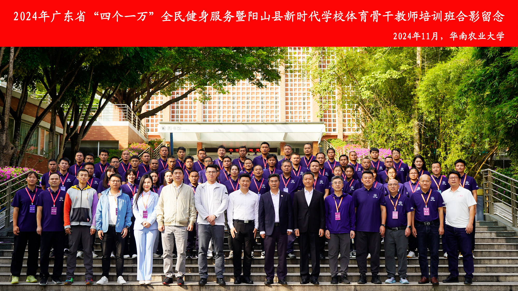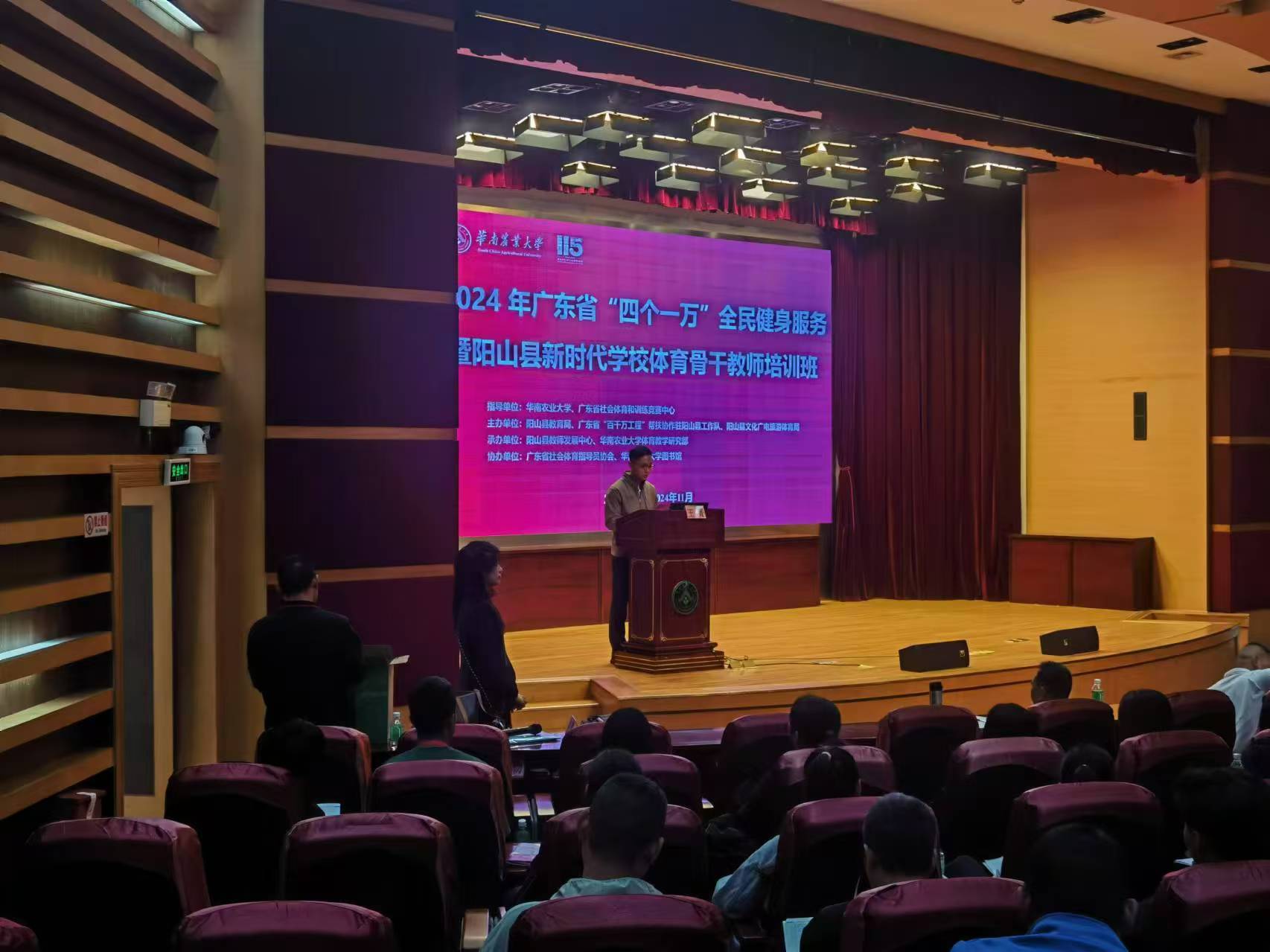 11月23日下午,2024年广东省“四个一万”全民健身服务暨阳山县新时代学校体育骨干教师培训班在华南农业大学举行。来自阳山县中小学体育骨干教师50余人参加了培训班。这是广东省“四个一万”全民健身服务计划阳山试点建设工作的首个培训班。