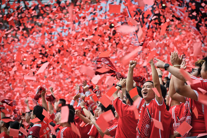 一场球赛只有90分钟,但对球迷来说,他们的“营业时间”要远早于开球时间。比赛正式开始前约2个小时,身着红衣的球迷就从四面八方朝着凤凰山体育公园移动。有规模的球迷组织甚至在走向球场的路上就开始放声高歌。进入赛场后,各个球迷组织还会在看台外组织热身拉歌,置身于此,每一个踏进球场的球迷都会被带动得热血沸腾。