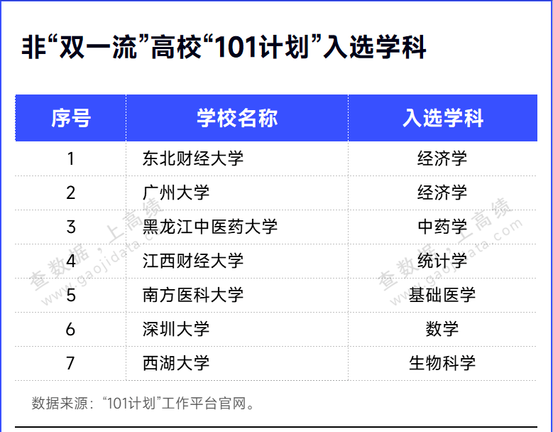 本次入选统计学“101计划”的高校中,江西财经大学是唯一一所非“双一流”高校。