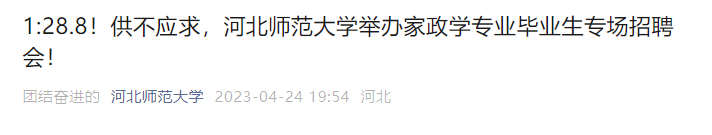 2023年,在河北师范大学举办的一场家政学专业毕业生专场招聘会上,来自京津冀地区的36家用人单位纷纷抛出了橄榄枝,为家政学专业的毕业生提供了近800余个就业岗位。