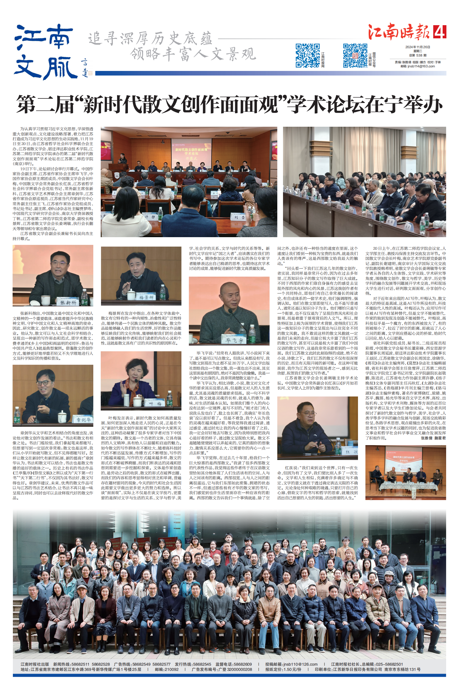 11月19日至20日,由江苏省哲学社会科学界联合会主办,江苏省散文学会、宿迁泽达职业技术学院、江苏第二师范学院文学院承办的第二届“新时代散文创作面面观”学术论坛在江苏第二师范学院(南京)举行。