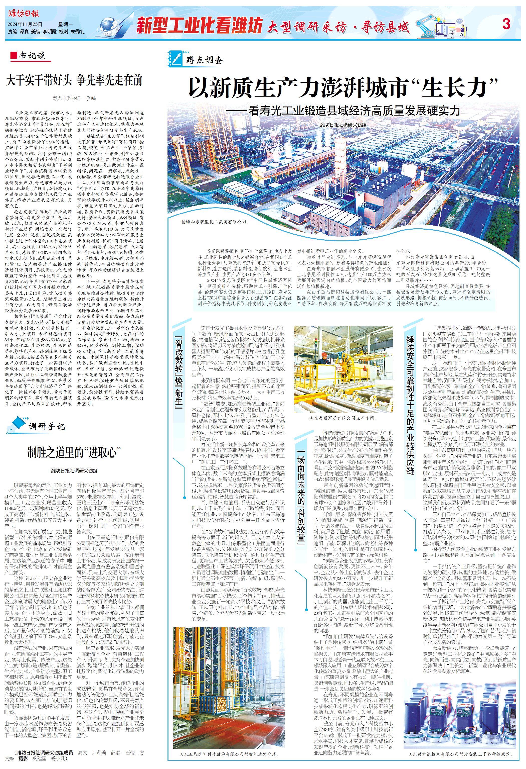在加快发展新质生产力、推进新型工业化的浪潮中,寿光深刻把握工业发展的基本规律,积极引导企业向产业链上游、向产业发展新方向突破,加快构建工业发展新格局。在这场产业跃迁的变革中,唯有保持积极的“进取心”,才能勇立产业潮头。