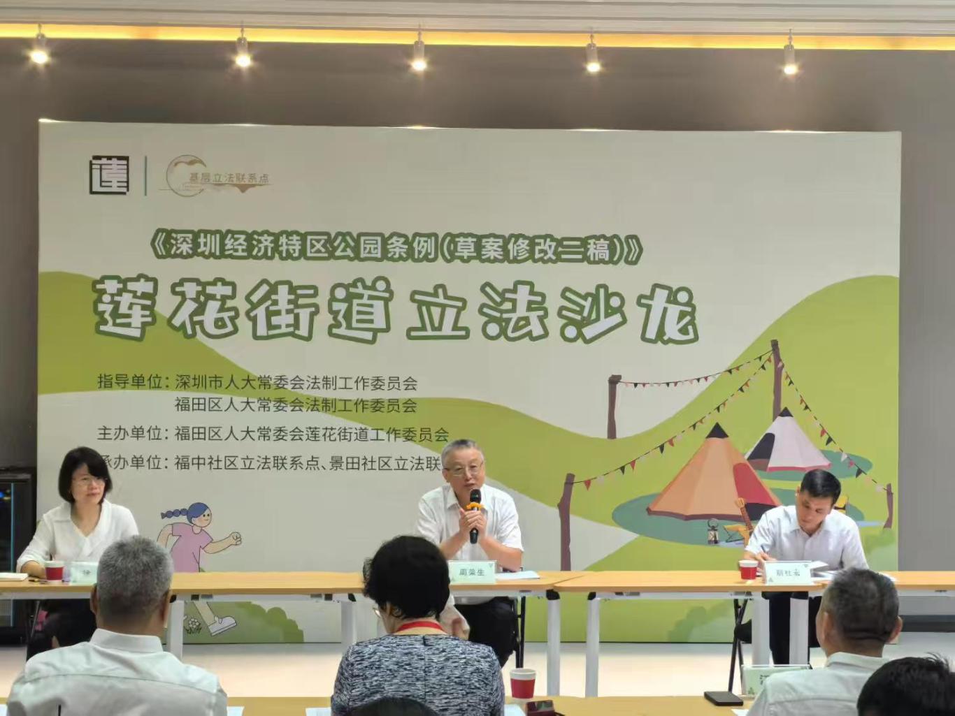 9月24日,莲花街道康欣社区景蜜公园热闹非凡,深圳市福田区人大常委会法制工作委员会联合区人大莲花街道工委,在此开展《深圳经济特区公园条例(草案修改二稿征求意见稿)》(下称《公园条例》)立法意见征集沙龙。