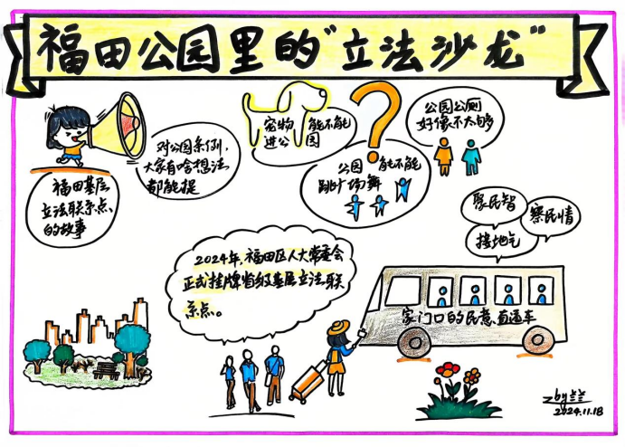 2020年,福田区人大莲花街道工委在全市率先创办街道级立法意见征集沙龙,连续4年对市民热议的《深圳经济特区个人破产条例》《深圳经济特区学前教育条例》《深圳经济特区社会信用条例》《深圳经济特区公园条例》等市级条例开展立法意见征集,听取人大代表、专家学者、居民群众对法规的意见建议,全方位拓展群众参与立法、表达诉求的途径和方式,让“高大上”的立法走到老百姓的“家门口”。