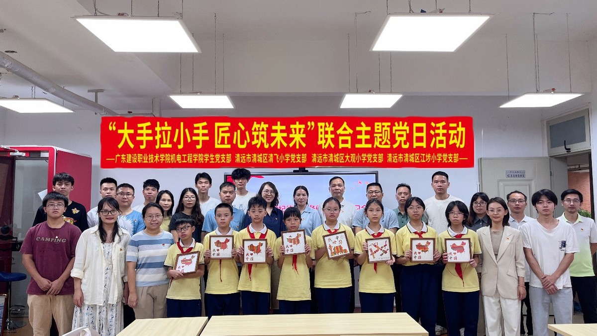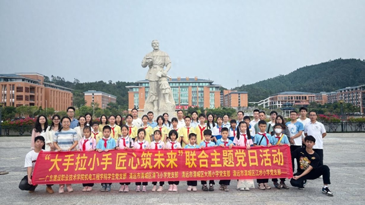 11月13日,广东建设职业技术学院机电工程学院学生党支部联合清远市清城区清飞小学党支部、大观小学党支部、江埗小学党支部共同开展了一场别开生面的“大手拉小手 匠心筑未来”联合主题党日活动。活动通过党建引领,推进大中小学思想政治教育一体化建设,促进高校与小学之间的交流与合作。