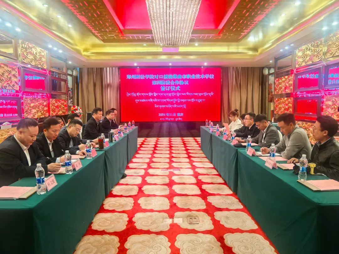 11月15日,郑州财经学院与那曲市职业技术学校共谋第二个十年教育对口援助工作洽谈会在重庆成功召开。双方回顾了自2014年建立对口援助关系十年来的成功做法,共同谋划第二个十年对口支援的规划,签订了第四阶段合作协议,并举行郑州财经学院向那曲市职业技术学校捐赠教学用车仪式。那曲市职业技术学校党委书记丁涛、副校长张越宇,郑州财经学院理事长牛钦民、校长吴中、纪委书记李赞,以及两校相关部门负责人参加会议。会议由吴中主持。