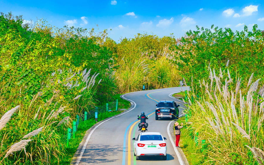 春赏百花夏有荫,秋闻桂香冬品梅。北林绿道,就像一根璀璨项链,一头连着城市繁华,一头连接乡村静谧,沿途美丽的自然风光和独特的绿化景观,形成了“路在林中、车在景中、人在画中”的生态公路形态,美丽、幽静、最具田园风光、最富人文气息的北林绿道,成为成都近郊一道亮丽的风景线,每天吸引着众多游人前来“打卡”。游客杨梅说:“北林绿道是‘森林’里开辟出来的道路,真是太美了,一路繁花似锦,美不胜收,呼吸一口天然氧吧的新鲜空气,让人感觉心旷神怡,我每个周末都要和朋友过来玩耍”。
