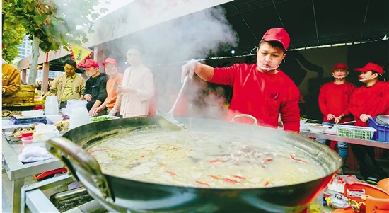 (活动集市现场热气腾腾的“上品”牛杂汤 图片由义乌市上溪镇人民政府提供)