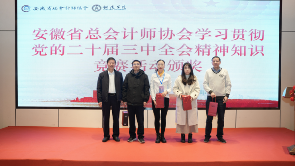 11月24日,安徽省总会计师协会举行2024年度“创新争优”奖和“学习贯彻党的二十届三中全会精神专题知识竞赛”奖颁奖典礼,铜陵学院荣获2024年度安徽省总会计师协会“先进单位奖”,该校财务处处长徐琴荣获“学习贯彻党的二十届三中全会精神专题知识竞赛”二等奖。中国总会计师协会副会长、北京大学光华管理学院教授王立彦,安徽省总会计师协会会长、合肥工业大学教授蒋翠清出席典礼。颁奖典礼由安徽省总会计师协会副会长方春龙主持。