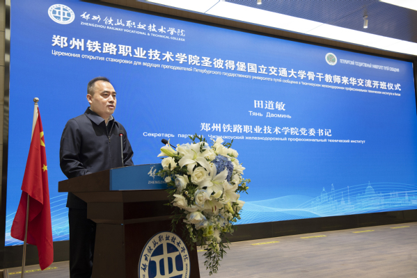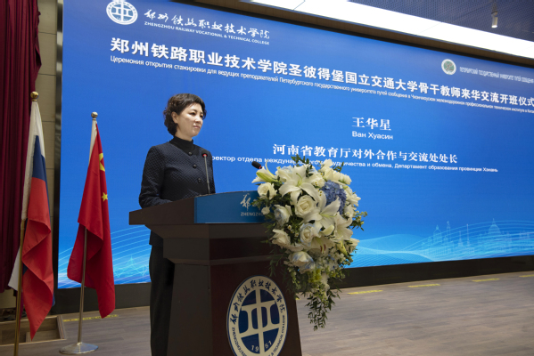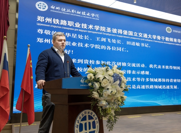 11月22日上午,郑州铁路职业技术学院举行了圣彼得堡国立交通大学骨干教师来华交流项目开班仪式。河南省教育厅对外合作与交流处处长王华星、河南省委外办欧洲处副处长王剑飞,学校党委书记田道敏、副校长李学武,圣彼得堡国立交通大学华布留多夫•安东一行16名骨干教师,学校相关部门负责人以及教学管理团队的教师代表参加了活动。开班典礼由副校长李学武主持。