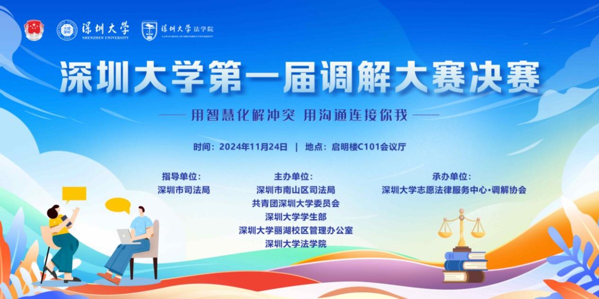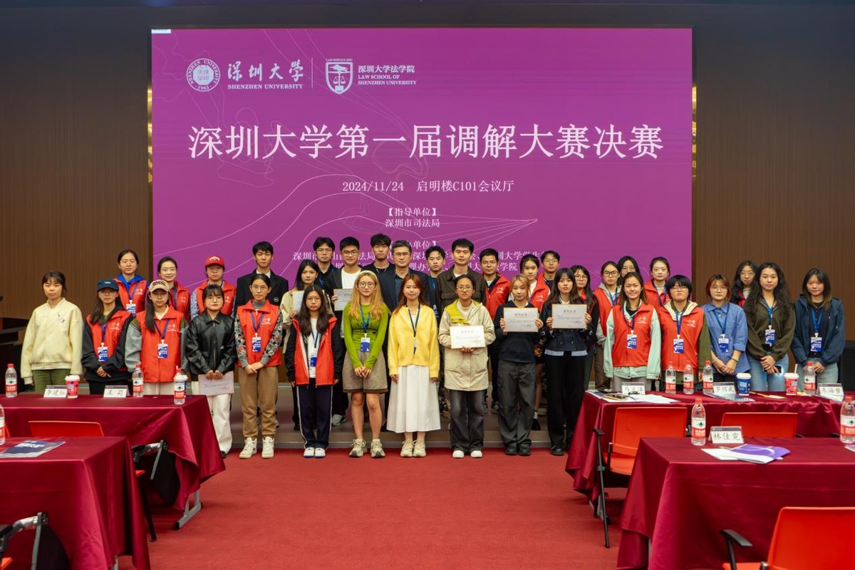 11月24日,由深圳市司法局指导成立的深圳大学志愿法律服务中心在深圳大学丽湖校区隆重揭牌,同时举办深圳大学第一届调解大赛决赛。此次活动吸引了上百名学生及社会观众到场。