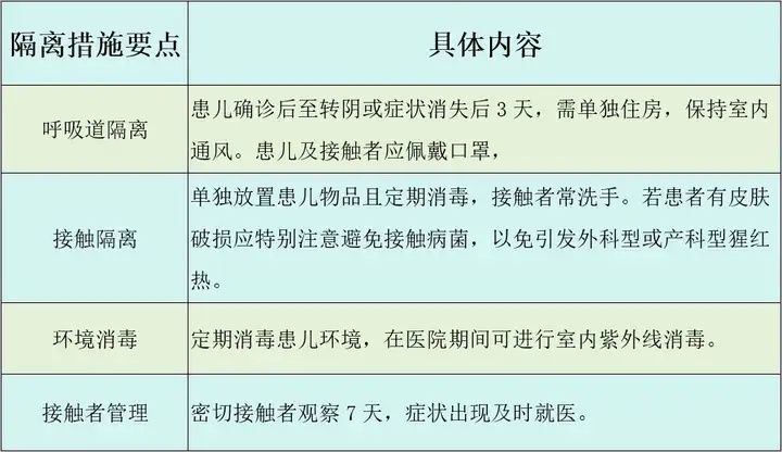 请注意:隔离措施旨在控制猩红热传播,应根据具体情况调整,请遵循专业医疗人员建议。
