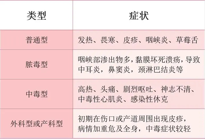 5.猩红热临床类型及症状: