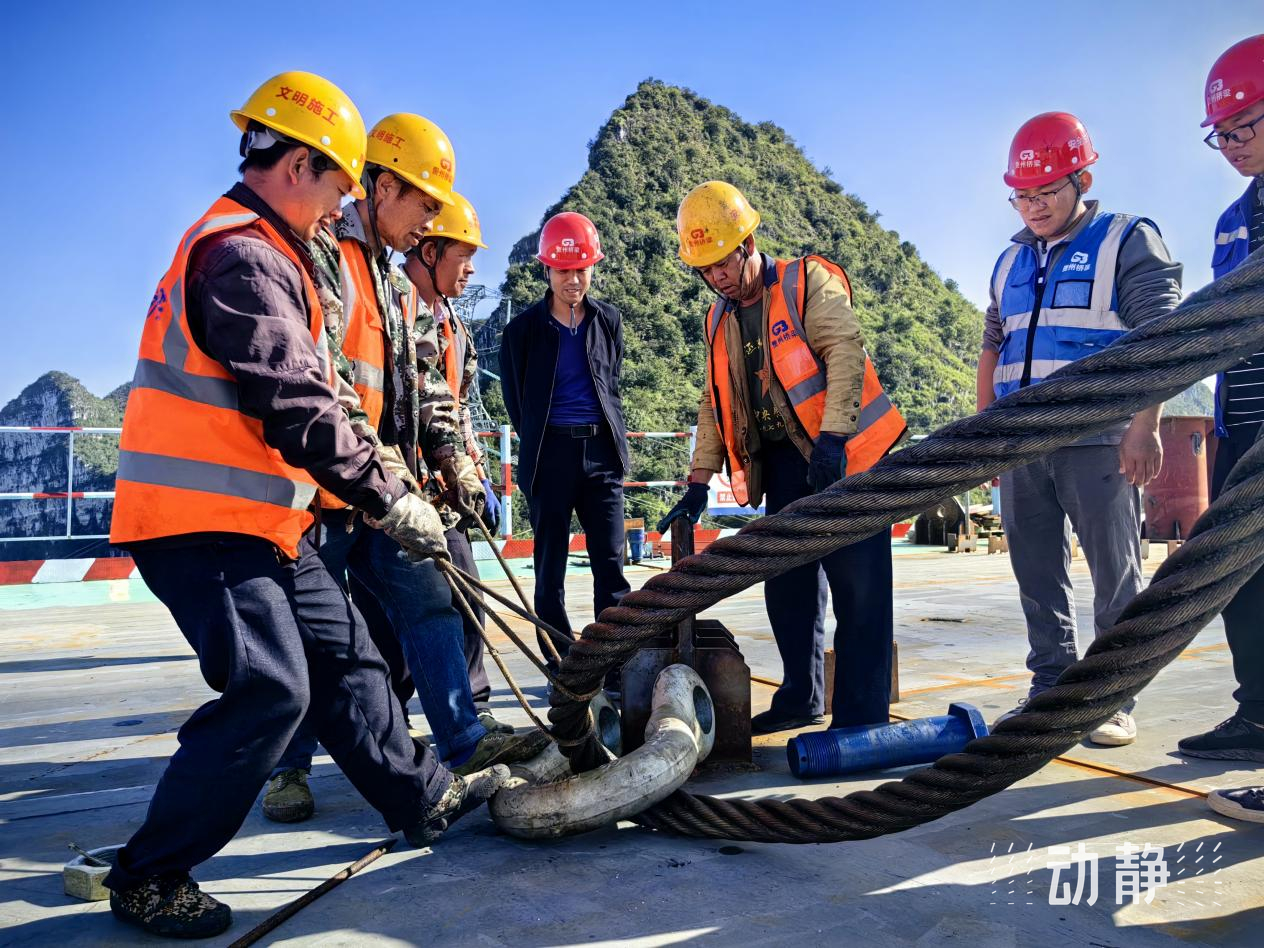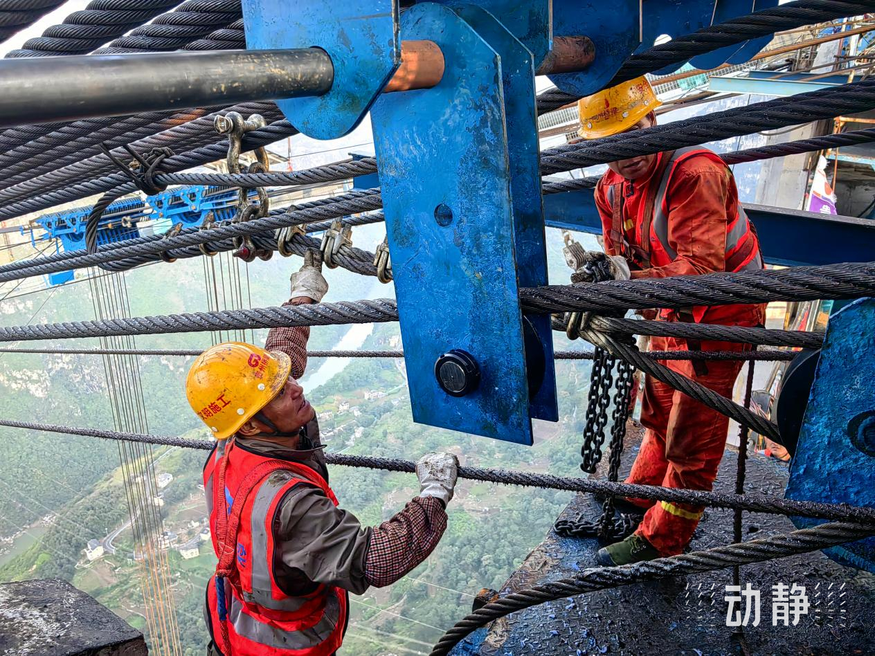 项目团队超前统筹协调,不断优化施工方案,适时调整施工节奏,保障钢桁梁吊装“加速度”推进。党员干部带头开展安全排查,做到“七分检查三分起吊”,不安全不起吊。吊装时,对吊具安全进行严格检查,在起吊平台、主塔缆塔、锚碇、滑轮组、控制操作室、缆吊跑车、钢桁梁对接处等各点位都安排专人负责盯守,确保万无一失。