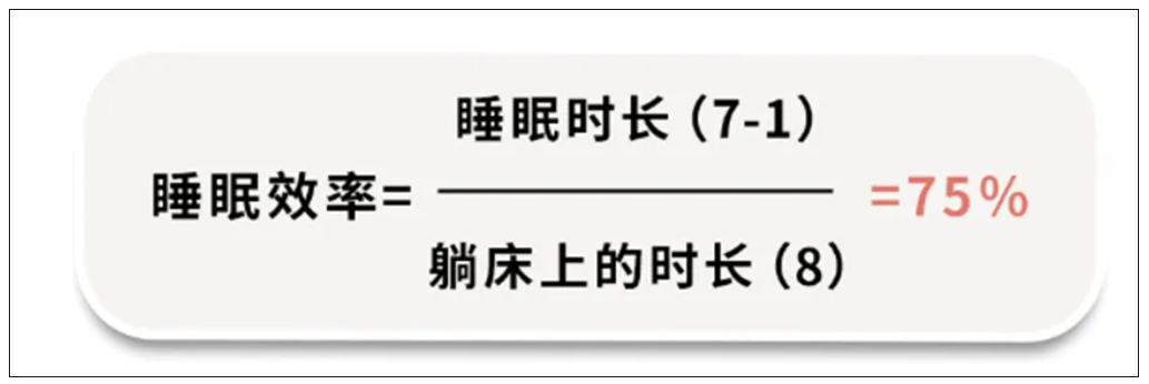 可以记录下睡眠数据,然后套上这个公式:睡眠效率=睡时长/躺床上的时间。举个栗子:你晚上11点上床,12点睡着,间反复清醒的时间加起来1小时,第二天早上7点醒的,那么一般来说,睡眠效率分为三档:高效率:90%-100%;正常效率:85%-90%;低效率:85%以下,睡眠效率越低,代表睡眠碎片化程度越严重!