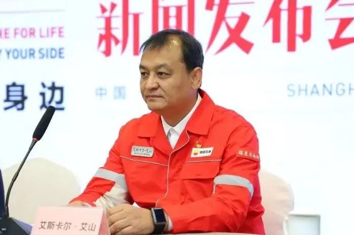 艾斯卡尔·艾山在现场回答记者提问,分享自己的施救经历。图/塔里木油田微信公众号