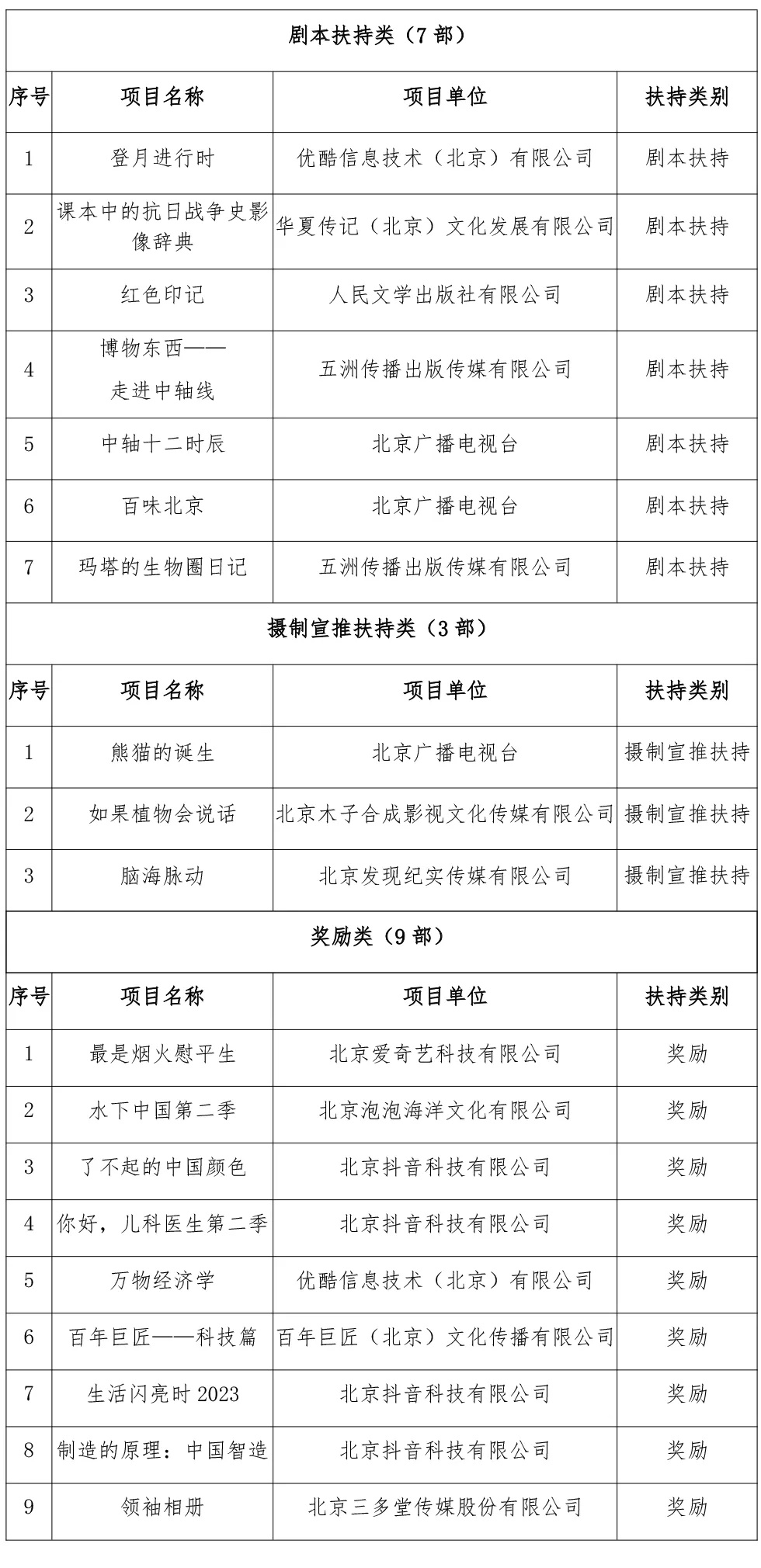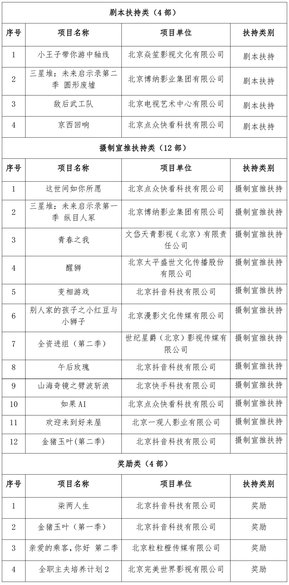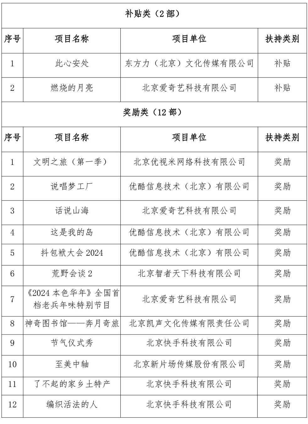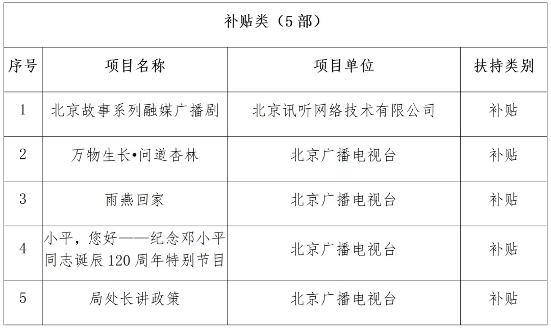 北京广播电视网络视听发展基金2024年度拟资助项目(第二批)名单公示