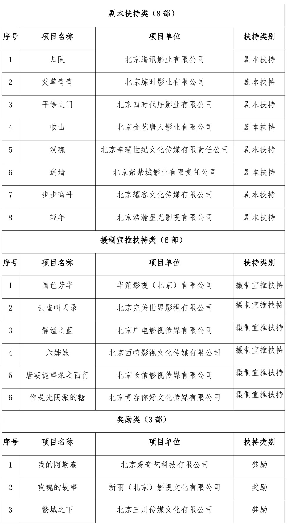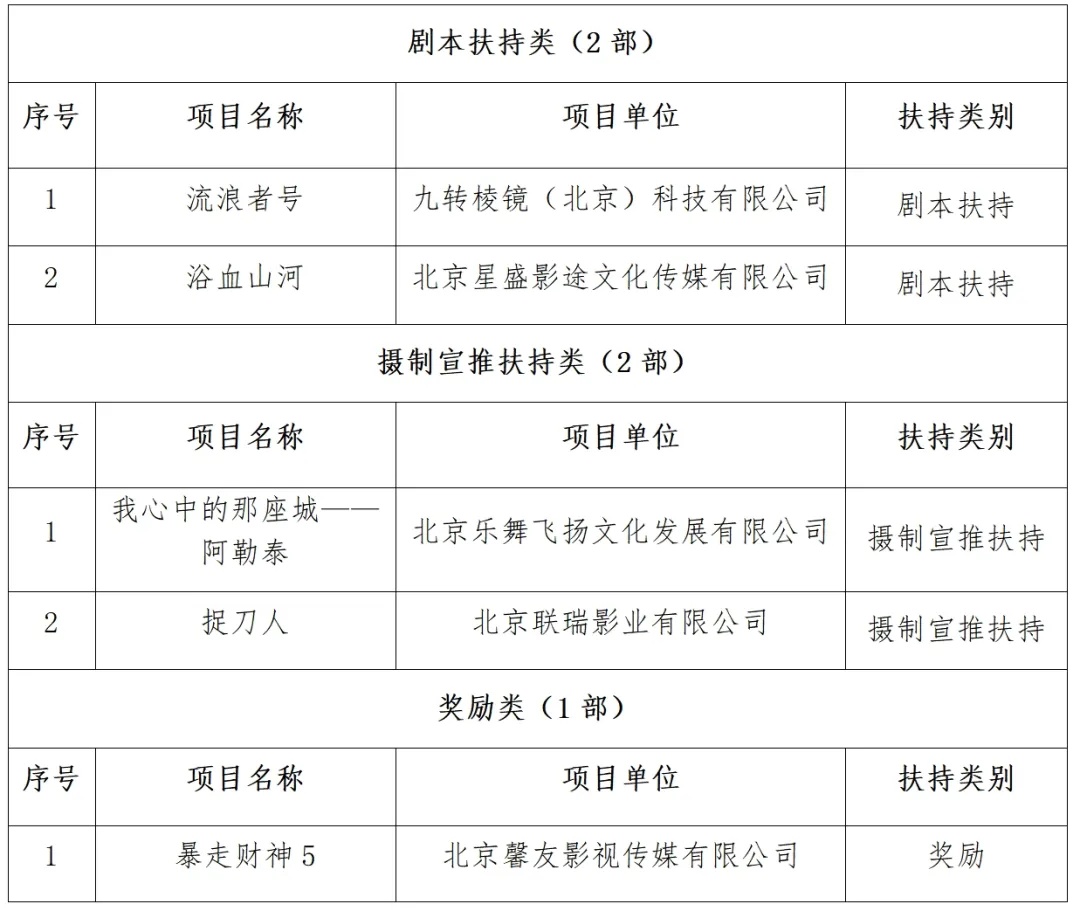 五、网络电影拟扶持及奖励作品名单