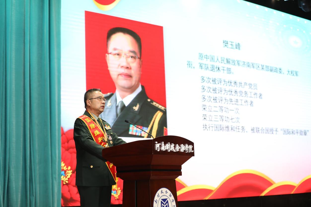 省退役军人事务厅党组成员、副厅长孙立超,省委党史和地方史志研究室副主任李海民,省政府国资委二级巡视员张毅,省教育厅副总督学方韬,省委宣传部宣教处三级调研员张玉坤,河南财政金融学院党委书记王雪云,校纪委书记、监察专员刘云兵,副校长杨伯坚出席活动,该校党委办公室、校长办公室、党委宣传部、学工部、团委、武装部、退役军人学院、信息化办公室及各学院党总支负责人、辅导员、全校600余名师生代表参加活动。