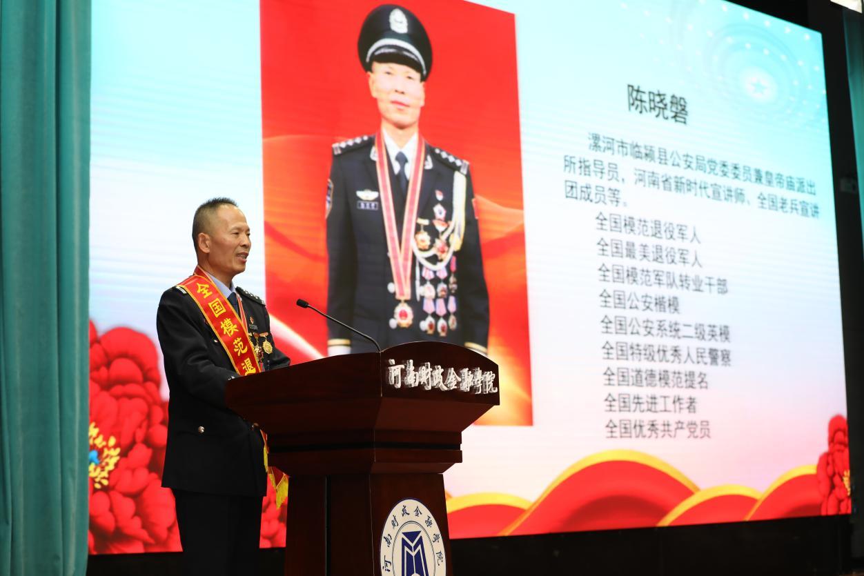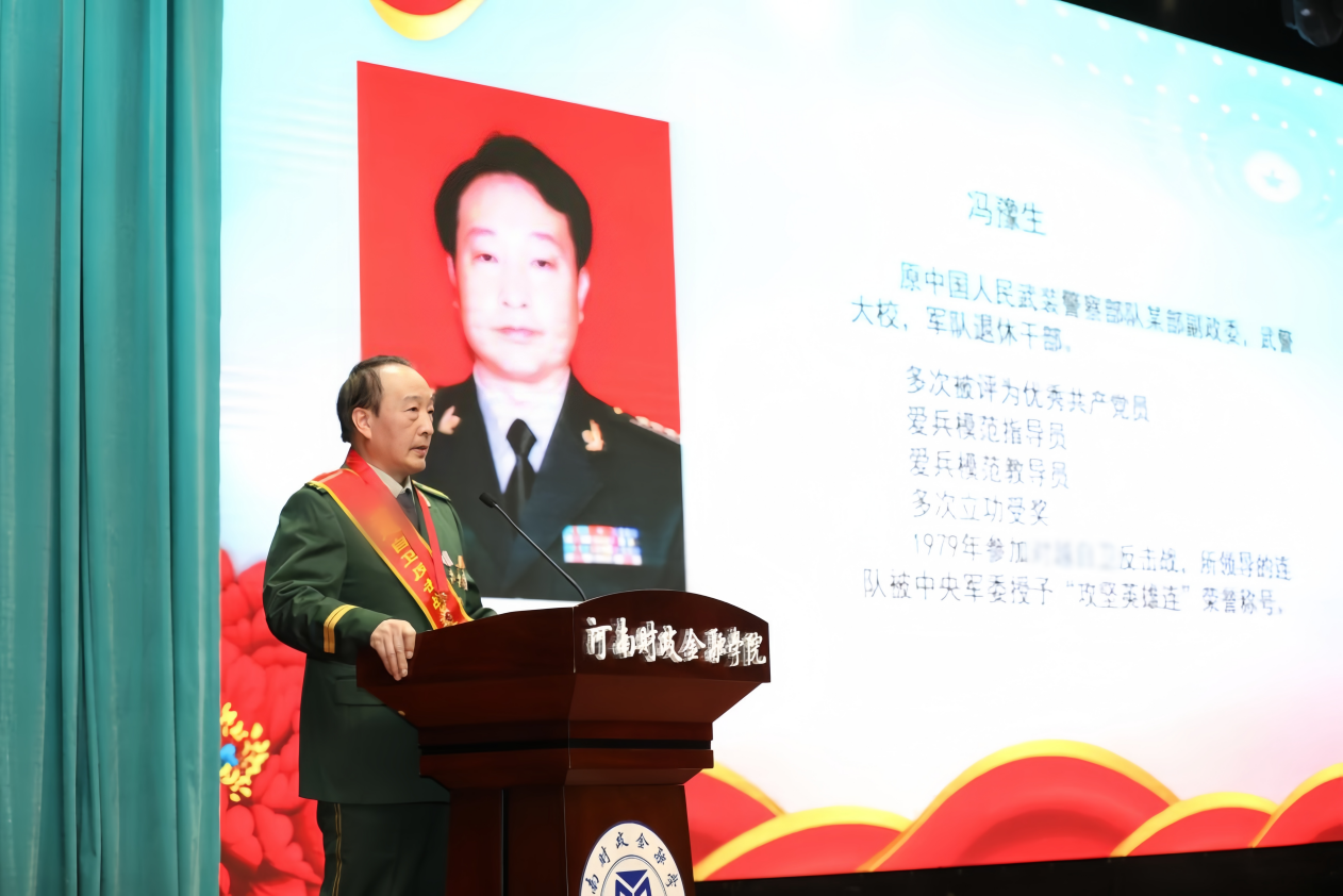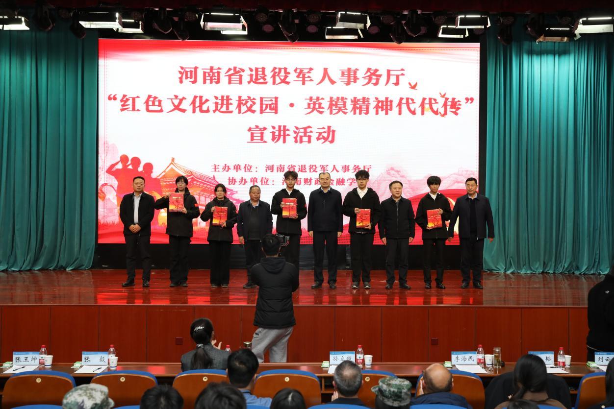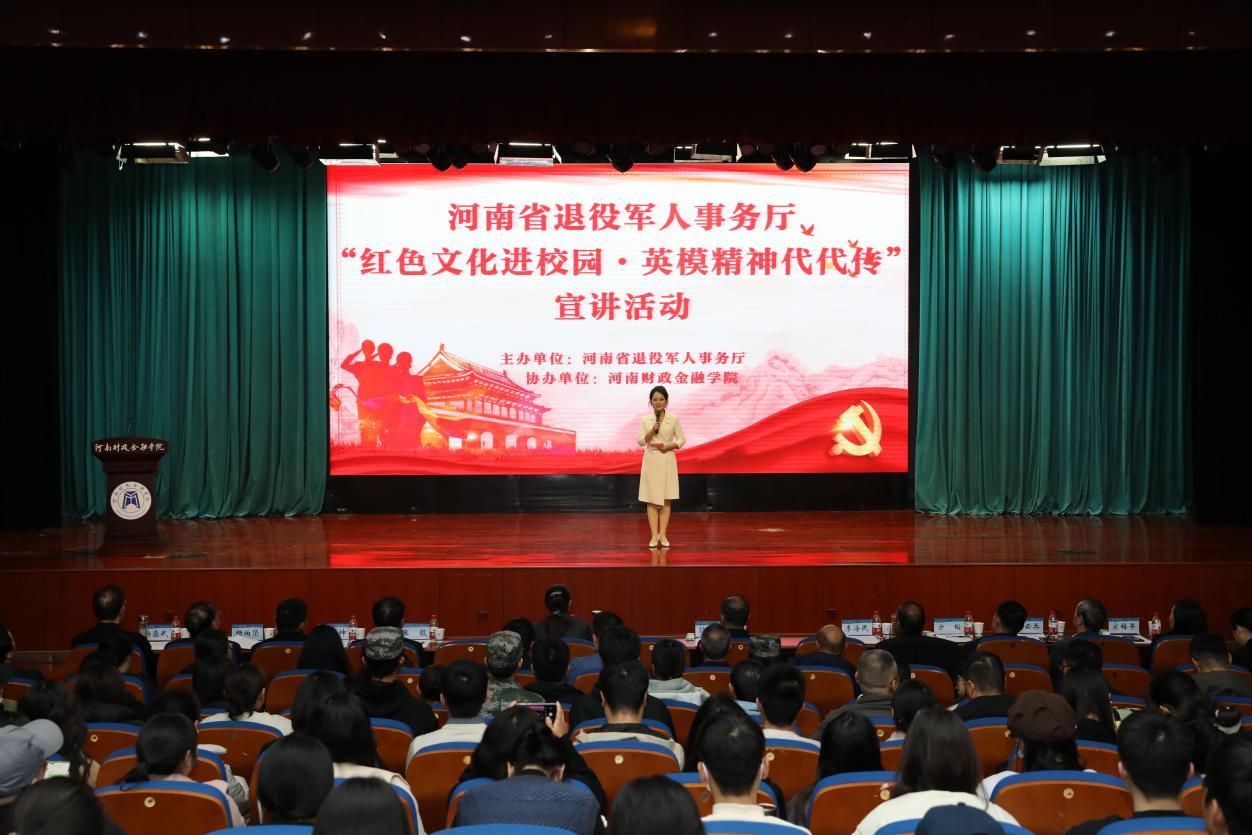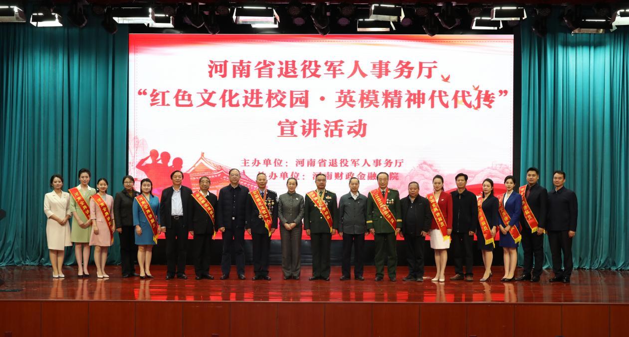 为进一步推动传承红色基因和思政引领工作走深走实,11月26日,由省退役军人事务厅主办的“红色文化进校园 英模精神代代传”首场宣讲活动走进河南财政金融学院,来自退役军人的优秀代表和红色宣传基地的英烈事迹金牌讲解员们,用自己的亲身经历和真实感人的历史资料为该校师生上了一堂精彩的思政大课。
