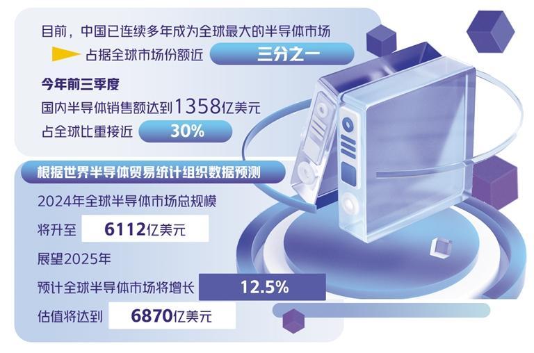 目前,中国已连续多年成为全球最大的半导体市场,占据全球市场份额近三分之一。今年前三季度,国内半导体销售额达到1358亿美元,占全球比重接近30%。政府对半导体产业有着较大的扶持力度,通过产业政策、税收优惠以及人才培养等方面的大力支持,逐步推进本土半导体制造和配套产业链的规模化和高端化。