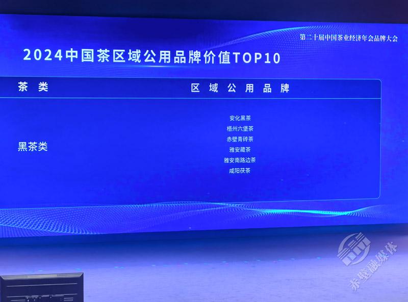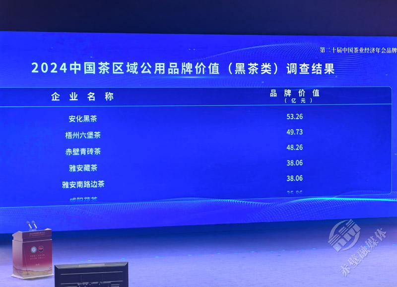2024中国茶区域公用品牌价值(黑茶类)调查结果发布,赤壁青砖茶品牌价值48.26亿元,排名第三。