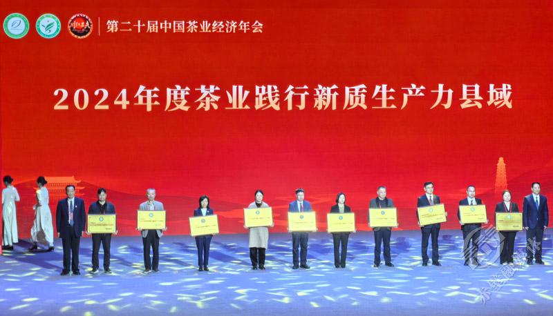 2024年度茶业践行新质生产力十大县域,赤壁市上榜,赤壁市政协主席、茶产业链常务副链长宋慧宇代表赤壁上台领奖。