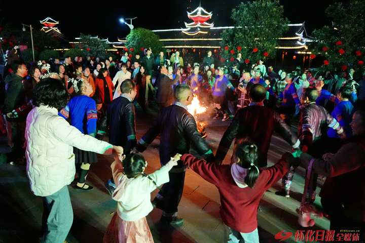 入夜,侗寨并没有因为夜色而安静下来。熊熊的篝火在鼓楼前燃起,村民和游客们手拉手,围着篝火跳起了多耶舞、竹竿舞,歌声、笑声、舞步声交织在一起,构成了一幅和谐美好的画面。
