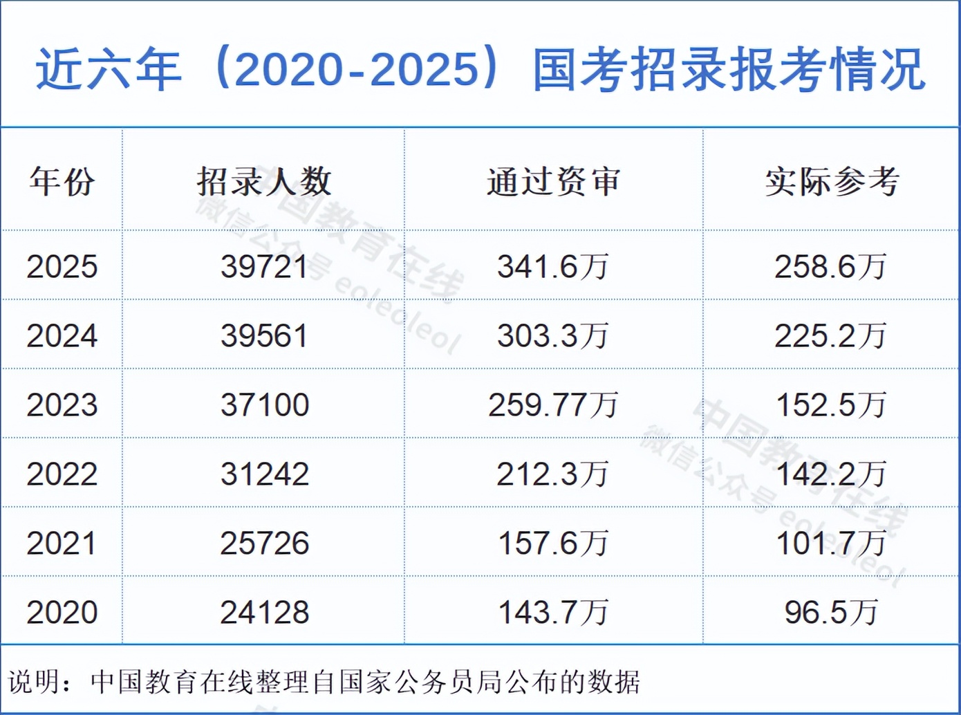 据国家公务员局公布的数据显示,本次国考共计划招录3.97万人,共有341.6万人通过了资格审查,与去年相比,增加了近40万人,招录规模与报名人数均再创新高!