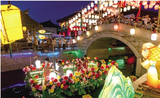 今年夏天,电视剧《与凤行》热播。作为拍摄地,象山影视城策划了“唐宋奇妙夜”之“与凤同行”沉浸游。活动还原剧中荷花妖一苇渡江、金娘子绣楼招亲等场景,还上演了沈璃和行止守护锦绣城的大型演艺,吸引了超40万人次入场“打卡”。