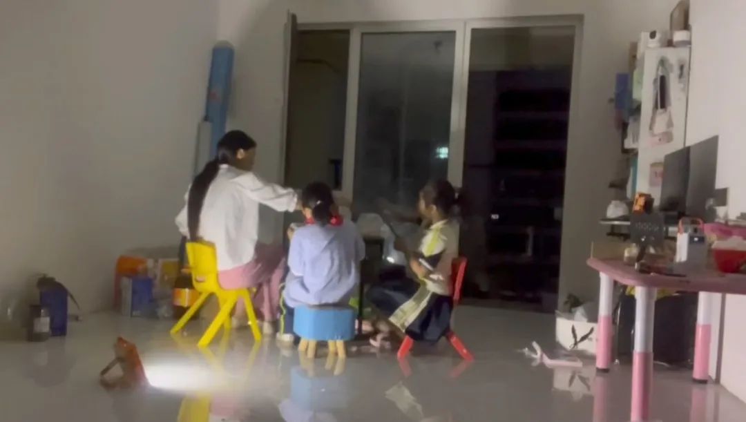 我永远都忘不了搬进新家的那一天。白天就下着大雨,等晚上我们爬上楼的时候,已经是狂风暴雨了。我淋着雨下去给孩子拿了外卖。两个孩子坐在没有门窗,没有灯光的环境当中,吃着汉堡。她们平时很少吃汉堡,我问好吃吗,她们“嗯”的声音很小,点了点头。我翻看那时候的视频,都很想掉眼泪。