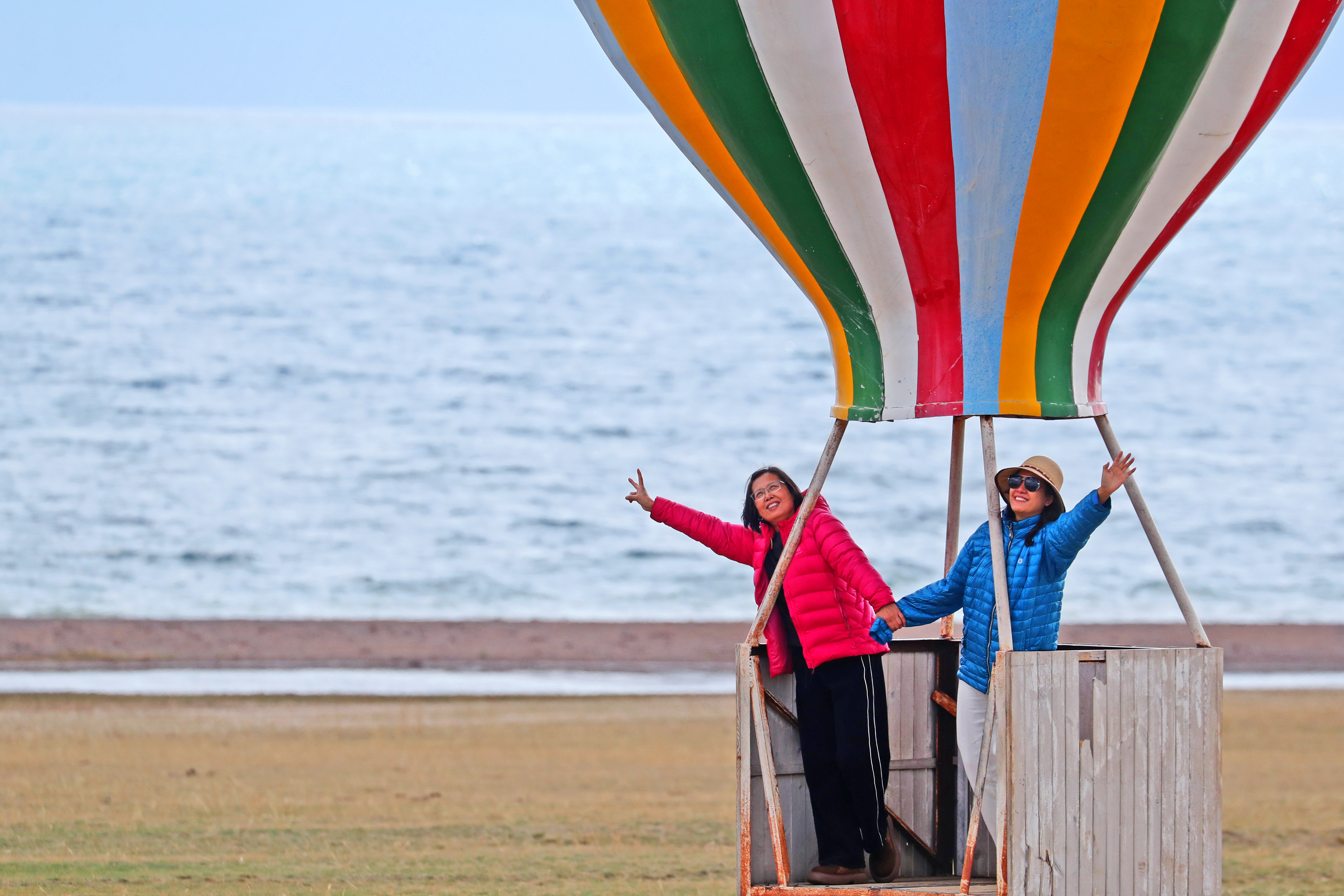 健康活力老人在新疆赛里木湖景区游玩 本报记者 陈晨 摄