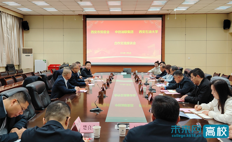 12月3日上午,西安市贸促会一级调研员冯武刚、中创油联集团董事长林晓飞一行到西安石油大学洽谈合作。西安石油大学党委副书记张木出席座谈会并讲话。
