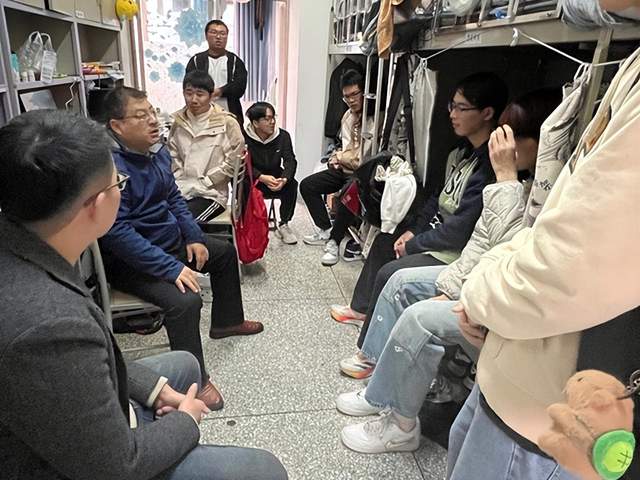 开展一次宿舍走访调研。学院领导走访学生宿舍,与同学们亲切交谈,了解学生的学习生活情况和意见建议。