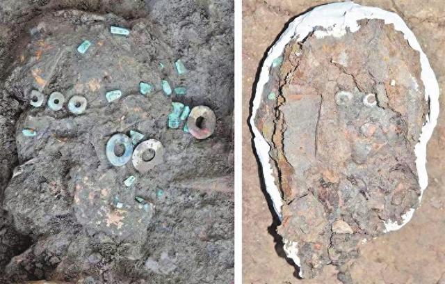 在我国考古发掘中,出土的“玉覆面”还有很多,比如新石器时代的山西襄汾陶寺遗址中发现一些与“玉覆面”类似的玉器组合,春秋战国时期河南洛阳金村大墓中出土的“玉覆面”由26片玉片组成。