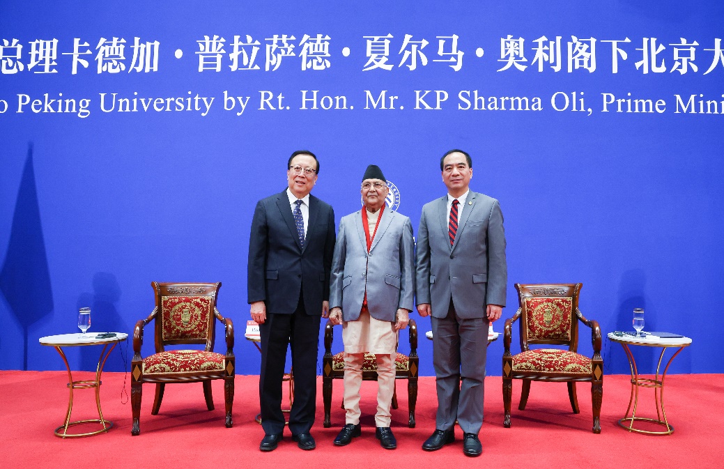 12月4日上午,在华访问的尼泊尔总理卡德加·普拉萨德·夏尔马·奥利(Khadga Prasad Sharma Oli)访问北京大学并作演讲。