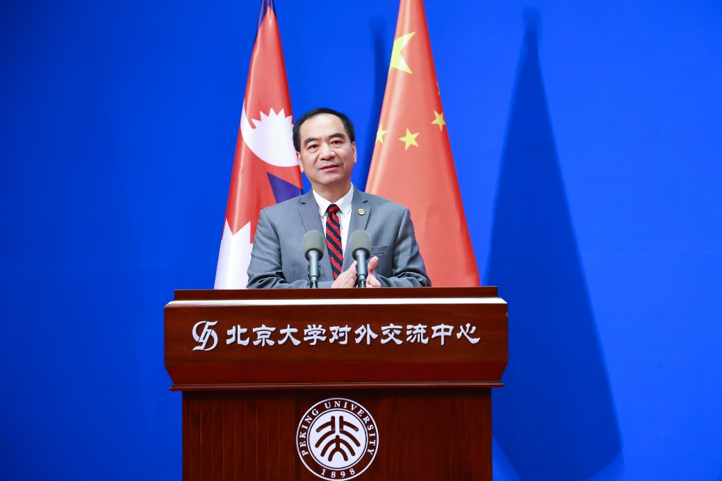 奥利以“Comprehensive Democracy: A Journey towards Prosperous Nepal, Happy Nepali”为题进行演讲。他首先表达了对北京大学在中国历史上,尤其是在教育发展、人才培养方面产生重要作用的赞赏。