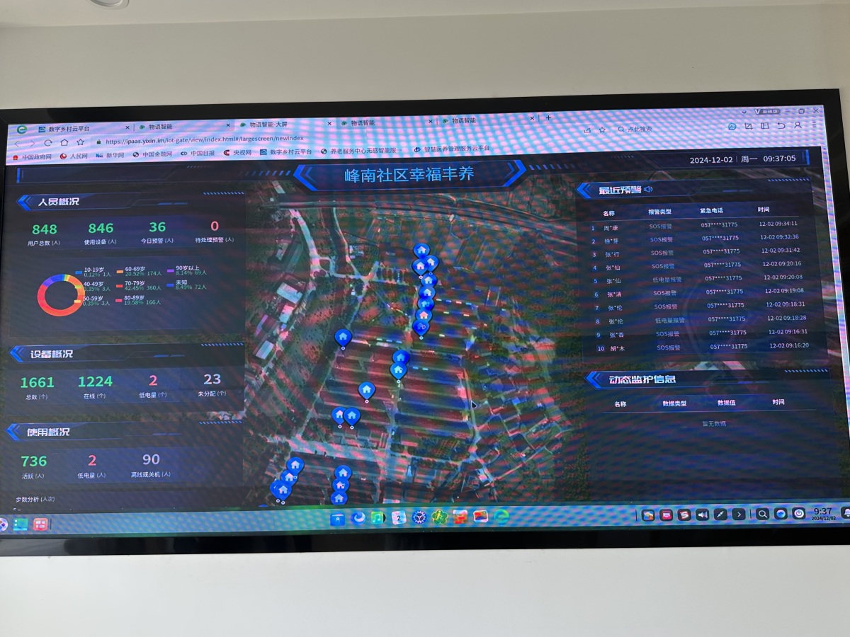 在峰南社区居家养老服务中心,林海云向记者揭秘5G智能化门铃系统的“智慧大脑”:墙面上的电子屏以全景地图进行展示,嵌入808套老年房的相关信息。屏幕外,主控操作室的电脑连接系统,24小时守护老年居民安全。